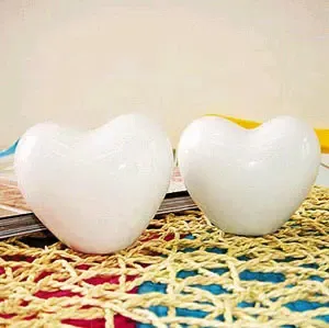 如此洁白无瑕的两颗心碰撞在一起相信没感觉的也会有感觉的。但是,不说你能猜出这其实是款调味瓶吗?刚刚恋爱的,或者刚成家不久的伴侣,为自己和身边的人制造一点点浪漫的气氛总是需要的,在用餐的时候看着这对创意心形的调味瓶,绝对是你调节气氛的一款珍品。
