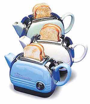 将烤吐司机与茶壶整合到一起,不但增强了造型的趣味性,而且非常实用。共一个电源,加热吐司的同时也可以沏上一壶茶(或者热咖啡)。样子也小巧可爱的,如果底下再加上轮子,名副其实的“面包车”。